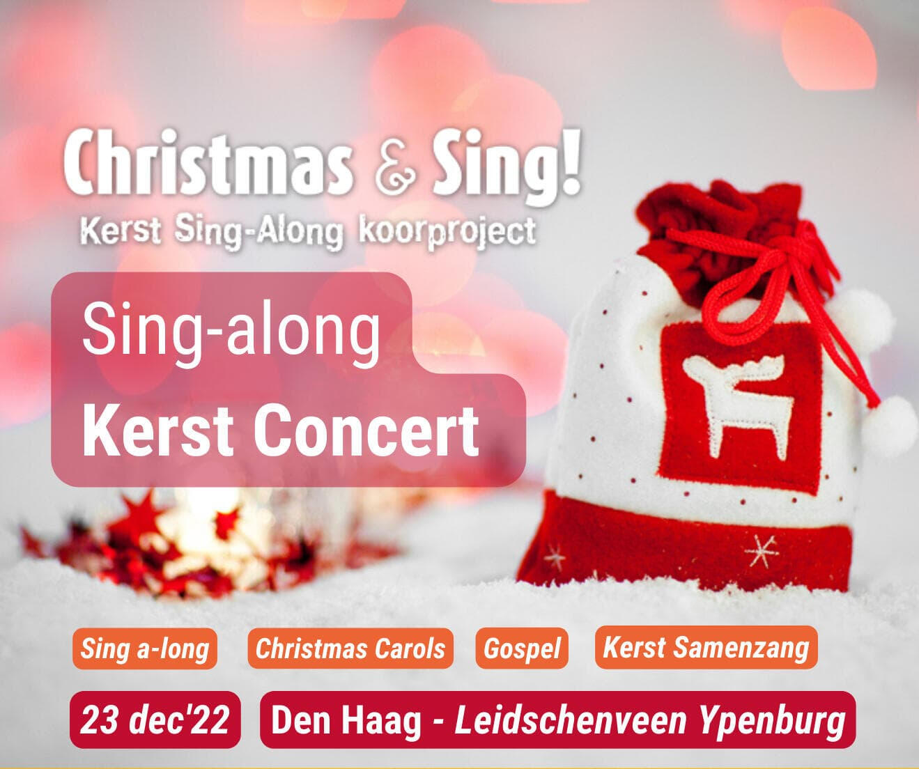 We nodigen je van harte uit om de kerstperiode in te luiden met het Christmas & Sing; het prachtig sing-along Kerstconcert waarin christmas carols, kerstsamenzang en gospelzang samenvloeien tot een heerlijke, sfeervolle kerstbeleving.